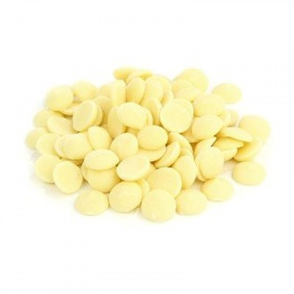 Απομίμηση Σοκολάτα Λευκή Σε Σταγόνα(Κουμπί). Μορφή σε σταγόνες (κουμπιά) για εύκολο ζύγισμα, λιώσιμο και ανάμειξη. Ιδανική για χρήση σε μπισκότα, μάφινς, κέικ και σοκολατένια διακοσμητικά στοιχεία.