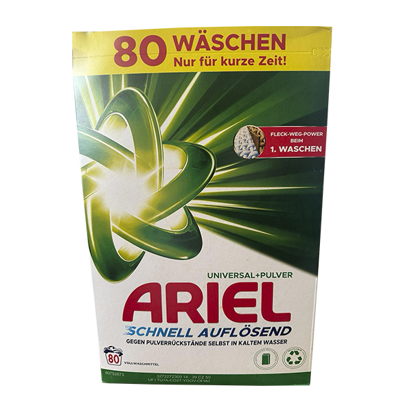 Ariel Απορρυπαντικό Ρούχων Σκόνη Πλυντηρίου. Αφαιρεί τους δύσκολους λεκέδες, ακόμη και όσους προκαλούν άσχημες μυρωδιές, όπως ο ιδρώτας και οι σωματικές οσμές.