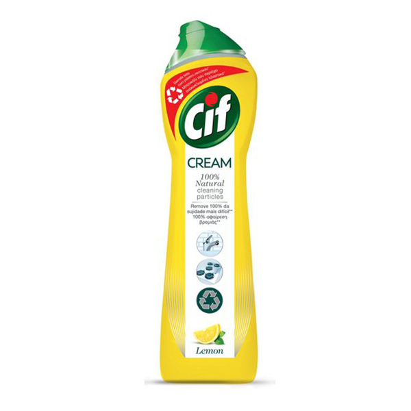Cif Κρέμα Λεμόνι Καθαρισμού Επιφανειών. Κάθε σταγόνα περιέχει εκατομμύρια μικρόκοκκους που καθαρίζει την κουζίνα, το μπάνιο και πολλά άλλα. Δίνει λάμψη στις επιφάνειές σας, όπως κεραμικές, ανοξείδωτες, εμαγιέ, πλαστικές και υαλοκεραμικές.